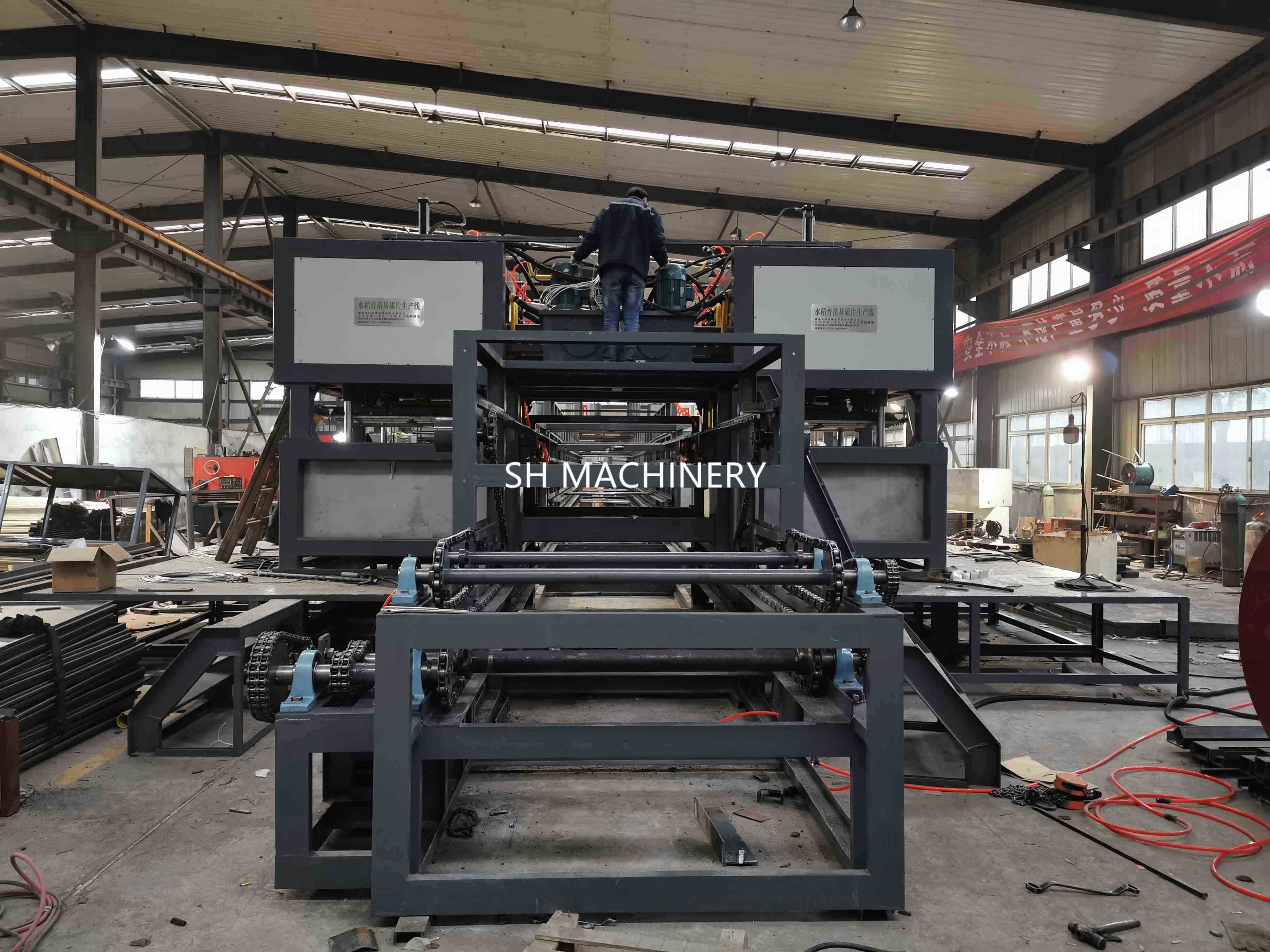 2020年年初,我司與中國農(nóng)業(yè)大學(xué)合作項(xiàng)目,生物質(zhì)環(huán)保育秧盤生產(chǎn)線,向黑龍江綏化市望奎縣客戶發(fā)貨:
